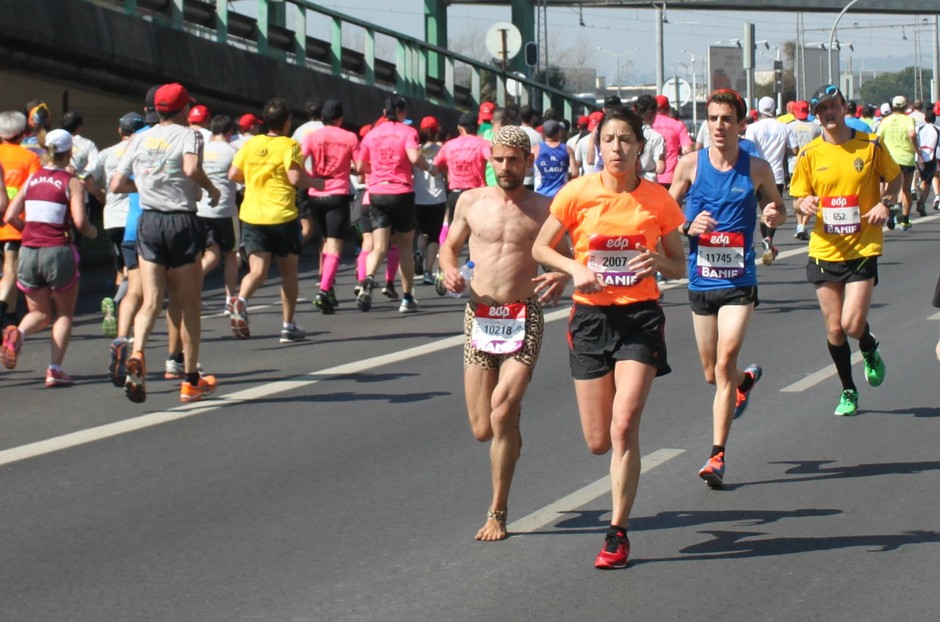 Si je suis arrivé à Tim Ingold, c’est qu’il signait en 2004 Culture on the ground (le monde perçu par les pieds), un essai passionnant sur le rapport qu’entretient notre civilisation moderne et occidentale avec le pied nu et le sol, et sur la manière dont notre usage inconditionnel de la chaussure et de la chaise est venu façonner et structurer en profondeur notre perception et notre compréhension du monde, du corps et de l’histoire de l’humanité. En courant le semi-marathon de Lisbonne déguisé en Tarzan, seul va-nu-pied au milieu de 12 000 paires de running (et arrivé en 280° position), je trouvais dans ce texte une caution universitaire à ma démarche.
