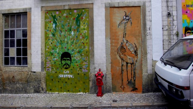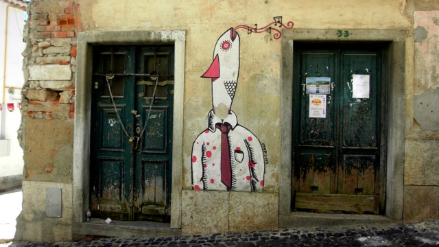 Il n’empêche, Lisbonne est une ville magnifique, et ce d’autant plus que ses murs sont recouverts d’œuvres en tous genres. En voici quelques unes photographiées par moi-même (click to enlarge) :