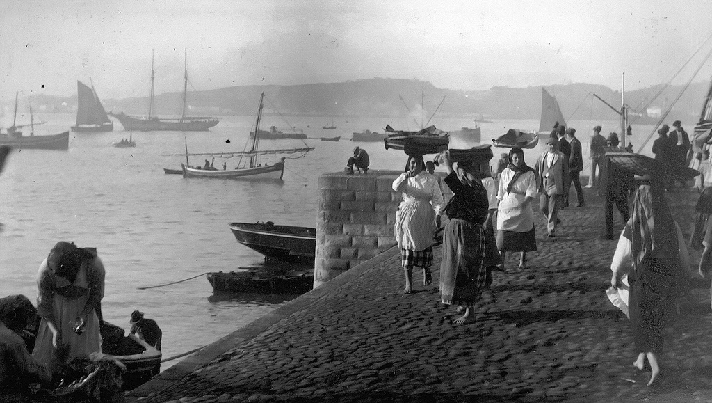 vendeuses de poisson travaillant pied nus – Portugal – date inconnue