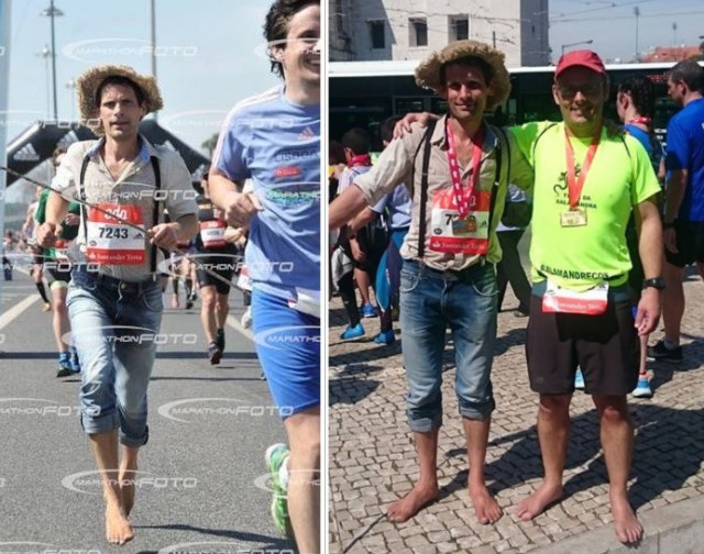 J’ai couru les 21 km avec mon ami va-nu-pied AP Santos, qui s’est mis à cette saine pratique en 2014 après avoir bu une bière avec Tarzan. AP, en plus d’être un grand ami, est donc celui qu’on peut qualifier de « first follower », celui grâce à qui je ne suis plus un freak solitaire et frappé du ciboulot. AP est celui qui, en s’affichant à mes côtés, transforme ma prestation ridicule en un discours digne d’intérêt, car lui donnant du crédit et de la légitimité (d’autant plus qu’il est déjà une figure médiatique dans le petit monde de la course à pied).